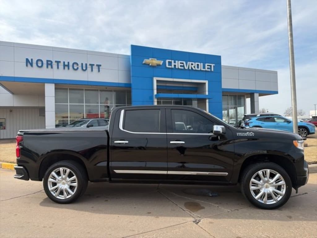 Black 2022 Chevrolet Silverado 1500 High Country 4WD 10-Speed Automatic 3.0L I6 10-Way Power Driver Seat w/Lumbar, 10-Way Power Passenger Seat Adjuster w/Lumbar, 12.3 Multicolor Reconfigurable Digital Display, 120-Volt Bed Mounted Power Outlet, 120-Volt Instrument Panel Power Outlet, 2 USB Data Ports, 2nd Row Heated Outboard Seats, Auto-Dimming Inside Rear-View Mirror, Auto-Locking Rear Differential, Bed View Camera, Bluetooth® For Phone, Body-Color Painted Mirror Caps, Chevrolet Connected Access Capable, Chevytec Spray-On Black Bedliner, Chrome Assist Steps, Chrome Recovery Hooks, Color-Keyed Carpeting Floor Covering, Compass, Deep-Tinted Glass, Driver Memory, Dual Exhaust w/Polished Outlets, Dual Rear USB Ports (Charge Only), Electric Rear-Window Defogger, Electrical Steering Column Lock, Electronic Cruise Control, Floor Mounted Center Console, Front Carpeted Floor Mats, Front LED Fog Lamps, Front Rainsensing Wipers, HD Surround Vision, Heated Driver & Front Outboard Passenger Seats, Heated Steering Wheel, Hitch Guidance, Hitch Guidance w/Hitch View, Integrated Trailer Brake Controller, Keyless Open & Start, Leather Wrapped Steering Wheel, LED Cargo Area Lighting, OnStar & Chevrolet Connected Services Capable, Outside Heated Power-Adjustable Mirrors, Perimeter Lighting, Power Front Passenger Windows w/Express Up/Down, Power Front Windows w/Driver Express Up/Down, Power Rear Windows w/Express Down, Power Sliding Rear Window w/Rear Defogger, Power Tailgate, Power Tilt & Telescoping Steering Column, Preferred Equipment Group 3LZ, Rear Carpeted Floor Mats, Rear Cross Traffic Alert-Braking, Rear Pedestrian Detection, Rear Wheelhouse Liners, Remote Vehicle Starter System, Safety Alert Seat, SiriusXM w/360L, Standard Tailgate, Steering Wheel Audio Controls, Theft Deterrent System (Unauthorized Entry), Trailer Camera Provisions, Trailer Side Blind Zone Alert, Trailering App, Trailering Package, Ultrasonic Front & Rear Park Assist, Universal Home Remote, Up-Level Rear Seat w/Storage Package, Ventilated Driver & Front Passenger Seats, Wi-Fi Hot Spot Capable, Wireless Charging, Wireless Phone Projection.