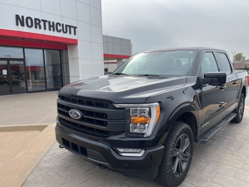 Black 2021 Ford F-150 Lariat 4WD 10-Speed Automatic 3.5L PowerBoost Full-Hybrid V6 3.5L PowerBoost Full-Hybrid V6, 4WD.
